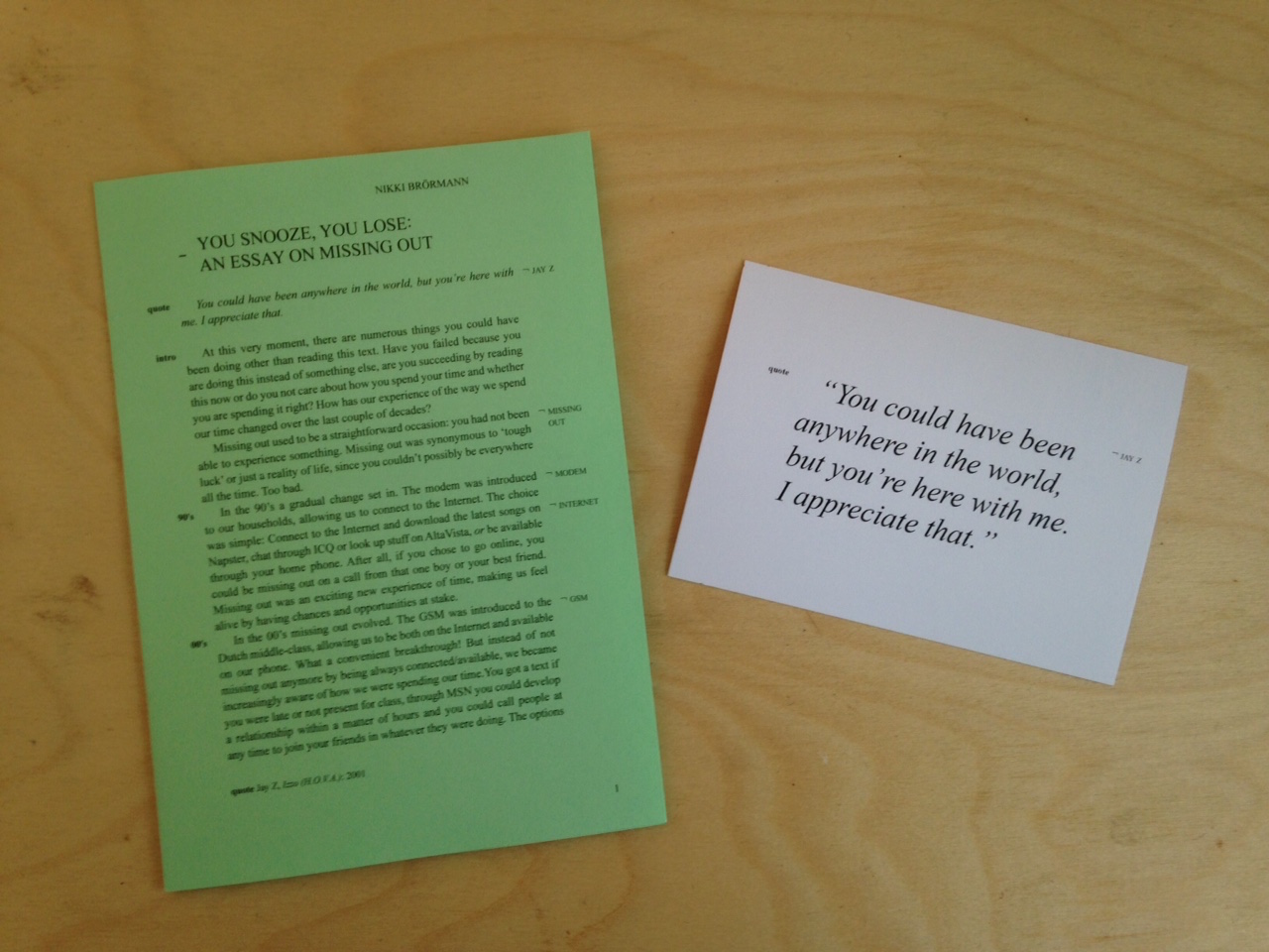For Frame Works I wrote an essay called “You snooze, you lose” on the evolution of missing out in an environment where the Internet reminds us 24/7 what other things we could be doing. How can we not fail? During the exhibition I also gave an interactive lecture on the topic of the essay (as can be seen in the image).